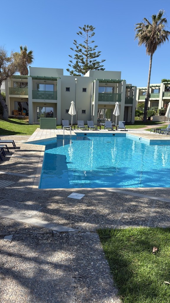 Meals at Taverna Akrogiali, set right on the water’s edge, were a highlight. We dined on grilled fish, wild greens and carafes of local white wine, with the sound of the sea never far away. The buffet at Main Restaurant was consistently strong, with changing daily specials and enough variety to keep things interesting. For lighter meals, Plaka offered pizza, pasta and salads under the trees, with just the right amount of casual style.